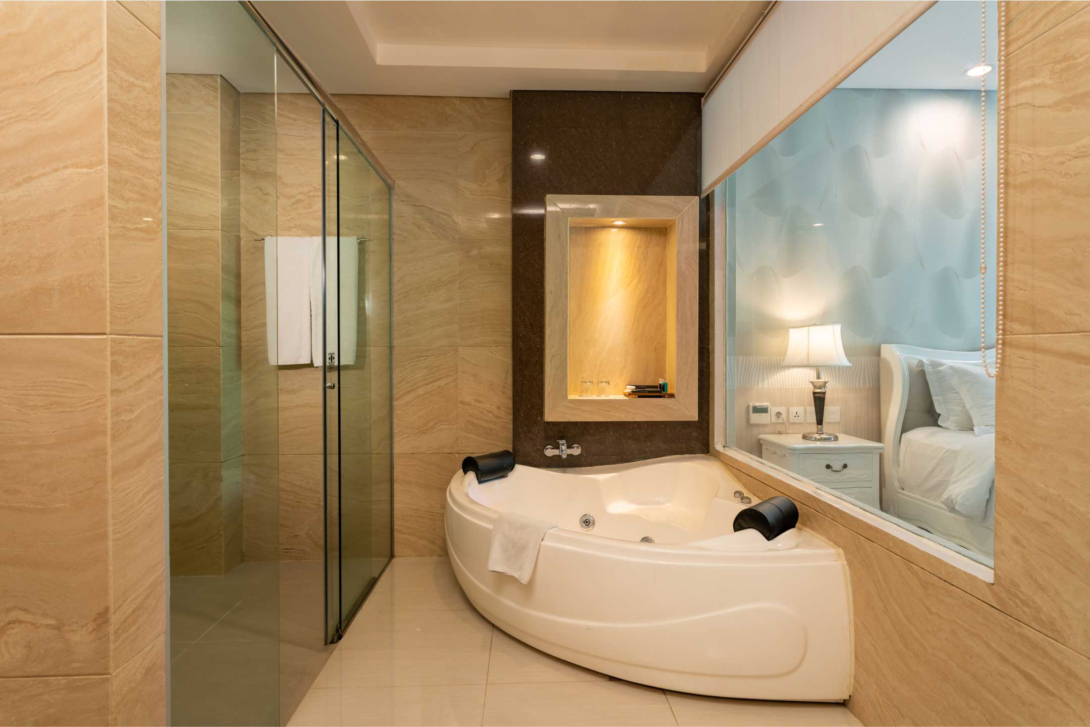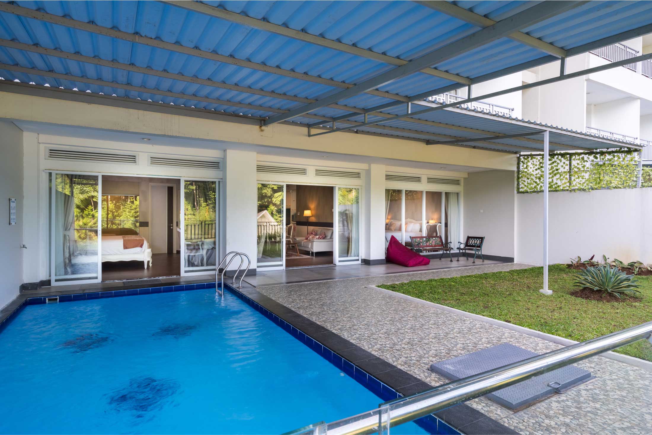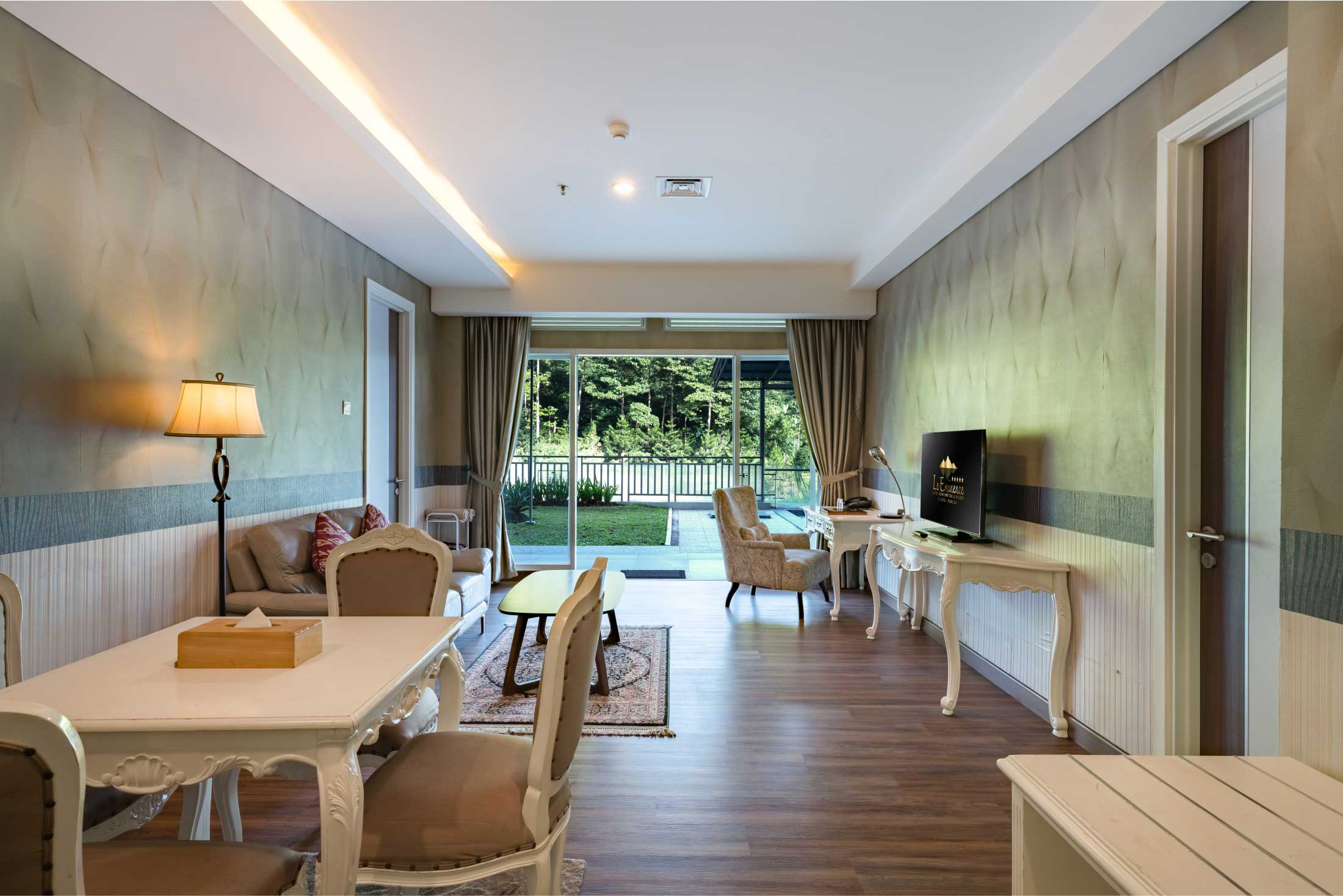 Indulge in the luxury of our Eminence suite, spanning 130 square meters and featuring two lavish bedrooms, each with a king-size bed (200 x 200 cm), and comprising three expansive areas, including a stylish living room and a private pool. Perfect for family stays or business trips, this suite offers breathtaking direct views of the majestic mountains and serene river, ensuring an unparalleled level of comfort and relaxation.